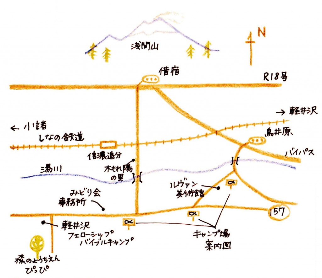 google マップなどで「森のようちえんぴっぴ」で検索すると周辺地図が出ます。