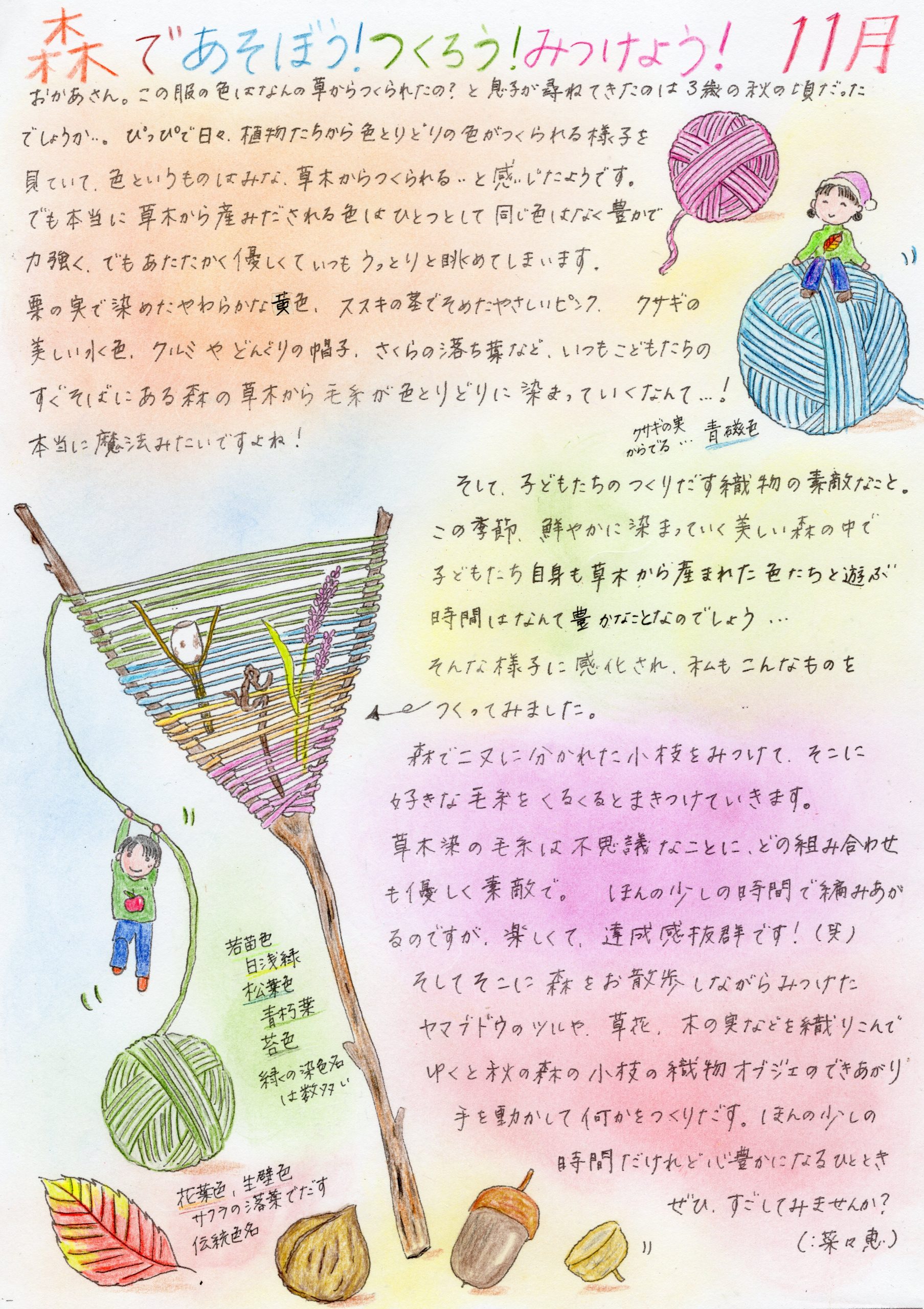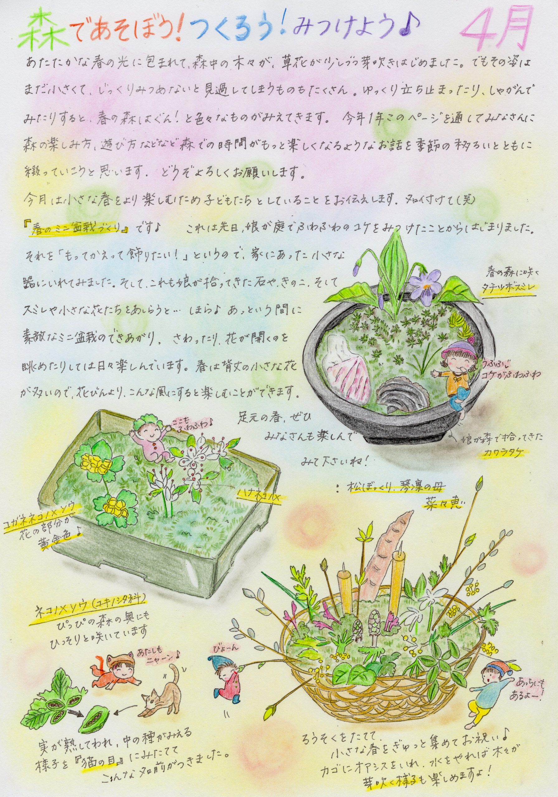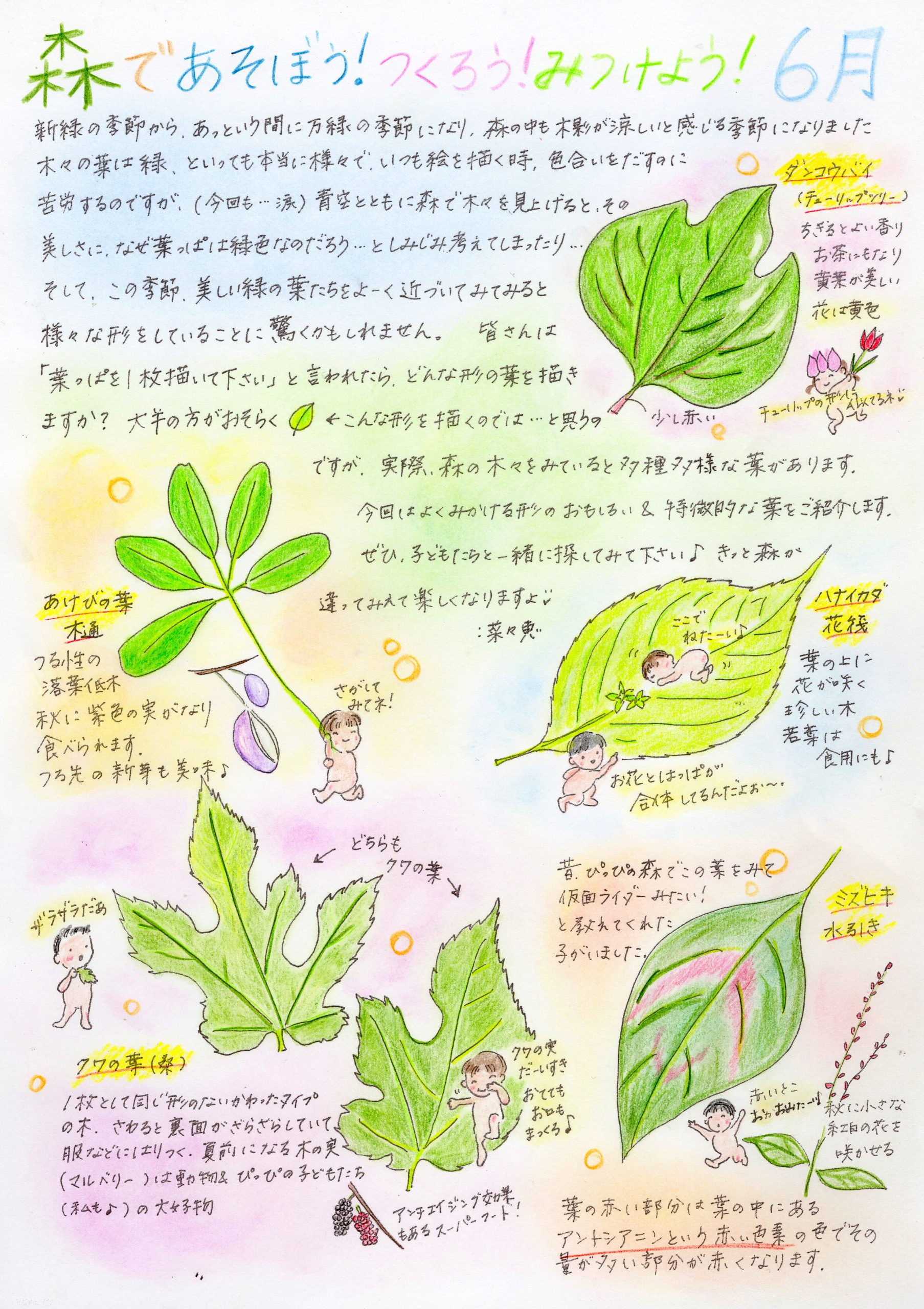 スタッフのななさんが「ぴっぴだより」の中で森についてのお話を素敵なイラストと共にご紹介してくださっています。